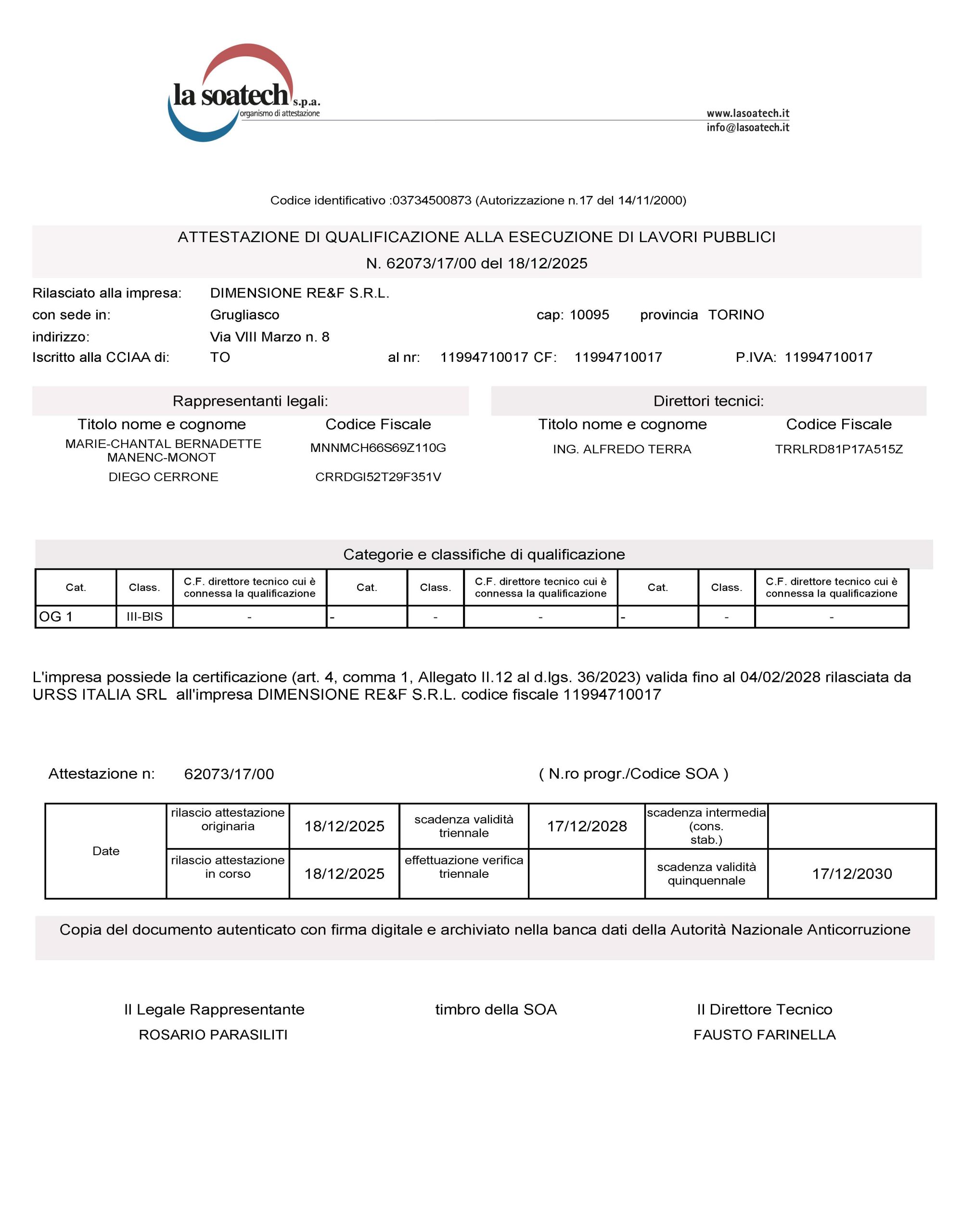 Certificazioni Dimensione RE&F